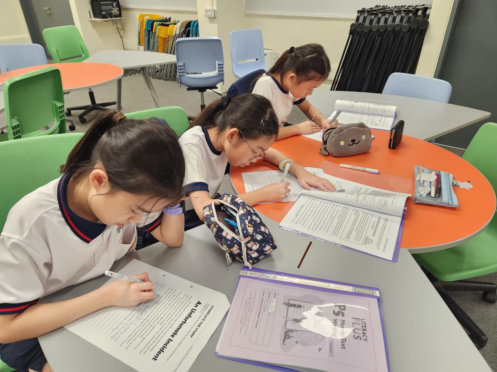 The Mentor Text Writing Programme supports selected Primary 5 pupils in refining and strengthening their writing skills. Pupils study well-crafted mentor texts to identify effective writing techniques and learn to apply these strategies in their own compositions.